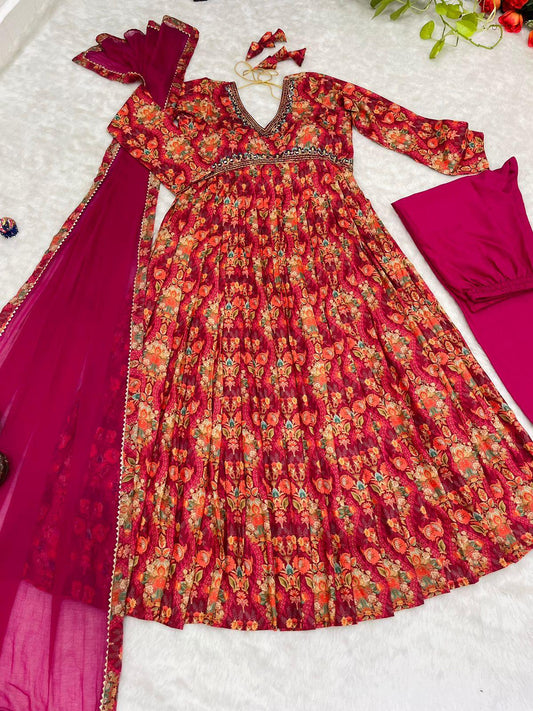 Party Wear Multi Color Digital Printed Anarkali Gown
