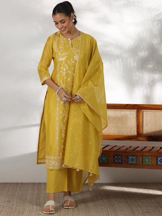 Color: Yellow Top Shape: Straight Top Type: Kurta Bottom Type: Trousers Dupatta: With Dupatta Top...