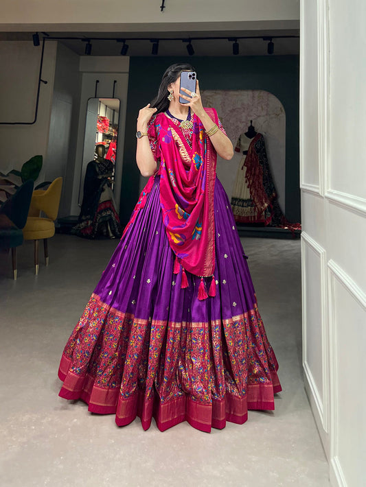 Purple Color Jacquard Silk Paithani Weaving Zari Work Wedding Wear Lehenga Choli