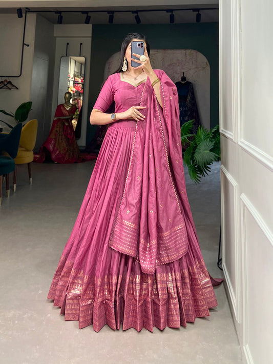 Chanderi pink color lehenga choli is a traditional Indian dress. It is known for its...
