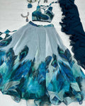 Beautiful Print Organza Sky Blue Color Lehenga Choli