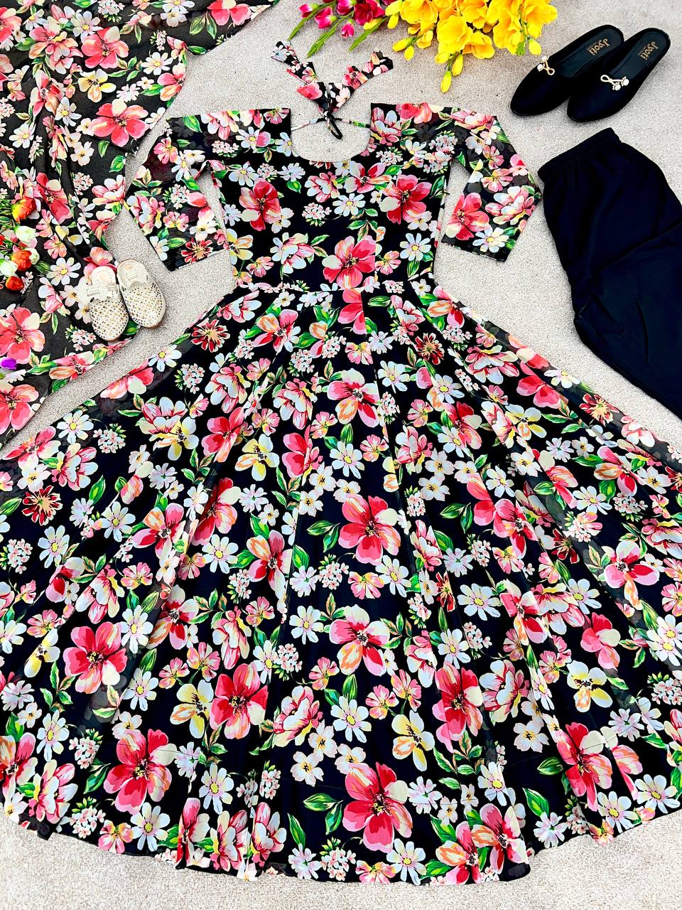 | Work | Beautiful Digital Print Work With Attached Pad With Full Sleeve And Latkan Dori With Fully Flair Attached Side Zipper) |