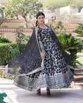 Black Color Sequence Embroidered Viscose Jacquard Gown With Dupatta