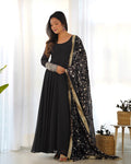 Black Color Soft Georgette Anarkali Gown With Heavy Embroidery Work Dupatta