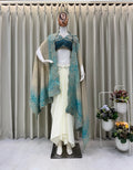 Blue Colour Three Piece Set With Embroidery Indo Western Outfit