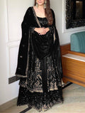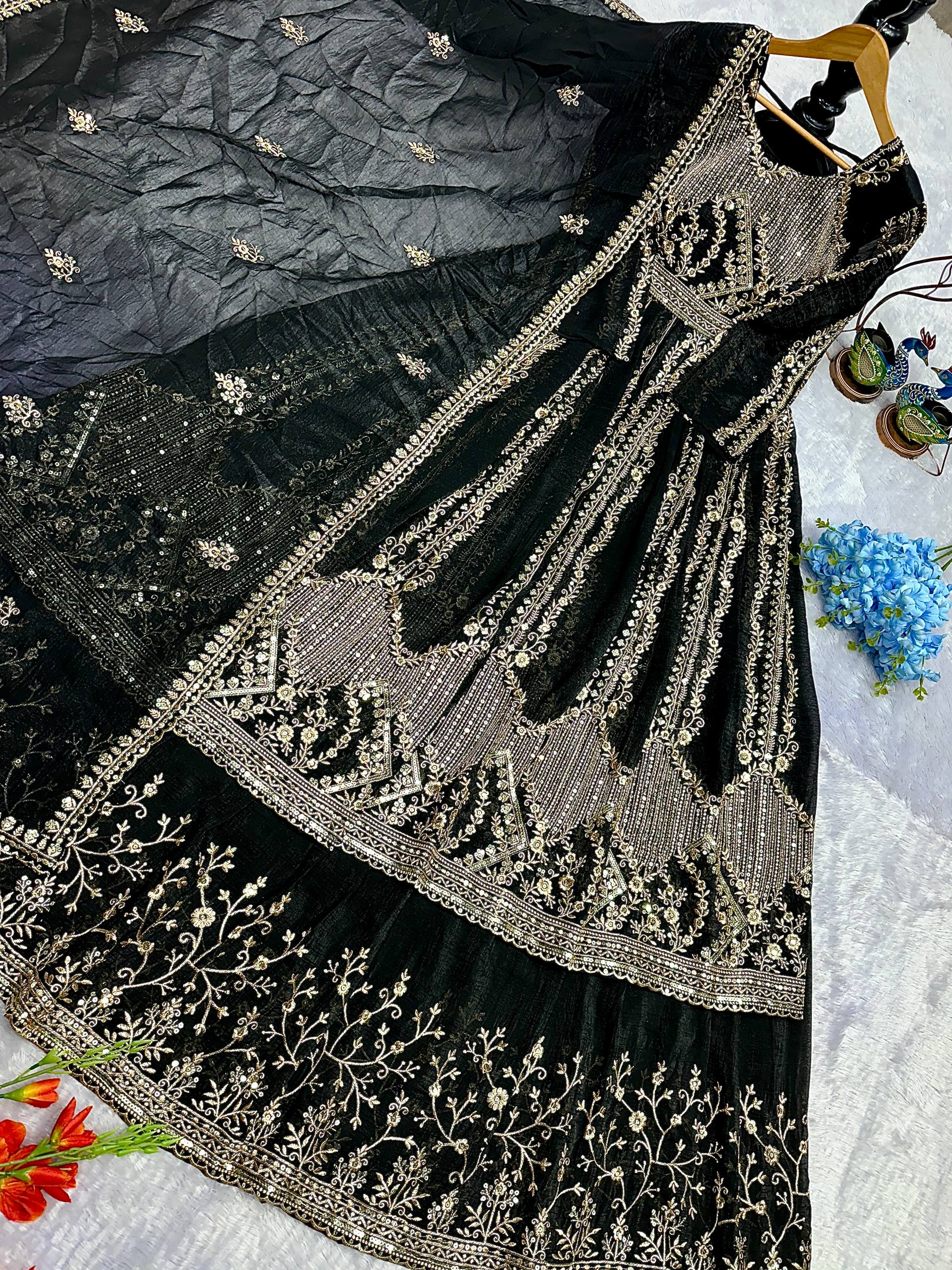 Blush Black Embroidered Anarkali Gown with Sequence Work Lahenga And Dupatta Set