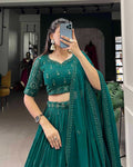 Bottle Green Color Georgette Thread Embroidered Lehenga Choli