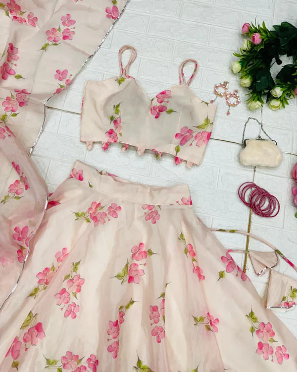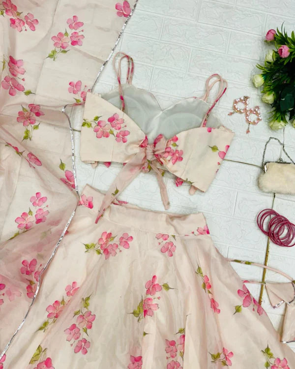 Ceremony Wear Off White Color organza silk Lehenga Choli