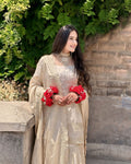 Chakrika Chinon Silk Off White Kurti Gharara Set