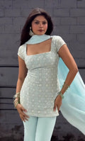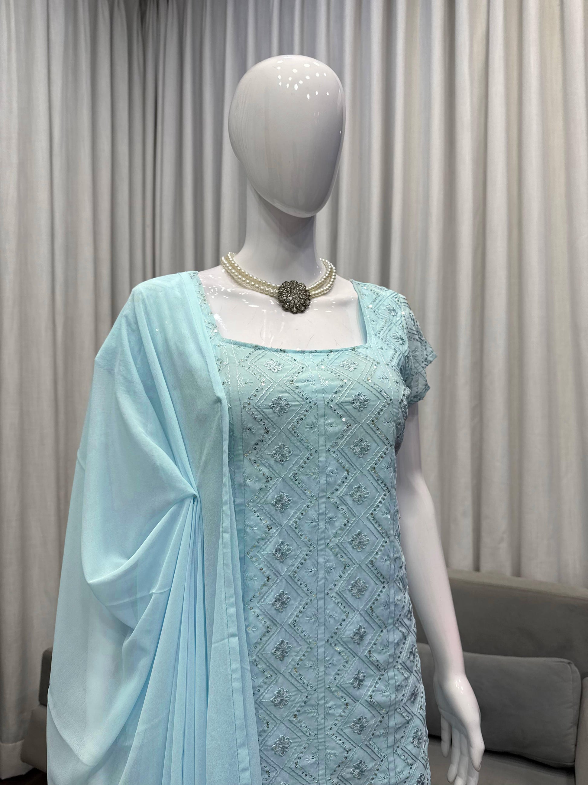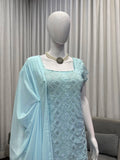 Cloudy Marshmallow Heavy Embroidery Work Kurta Palazzo Set With Dupatta