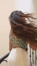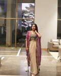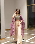 Cream Cowl Skirt Rama Blouse and Shrug With Embroidery Western Look Outfit