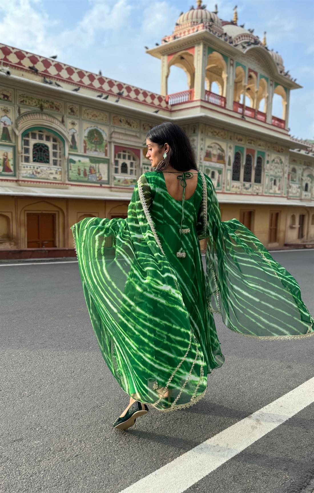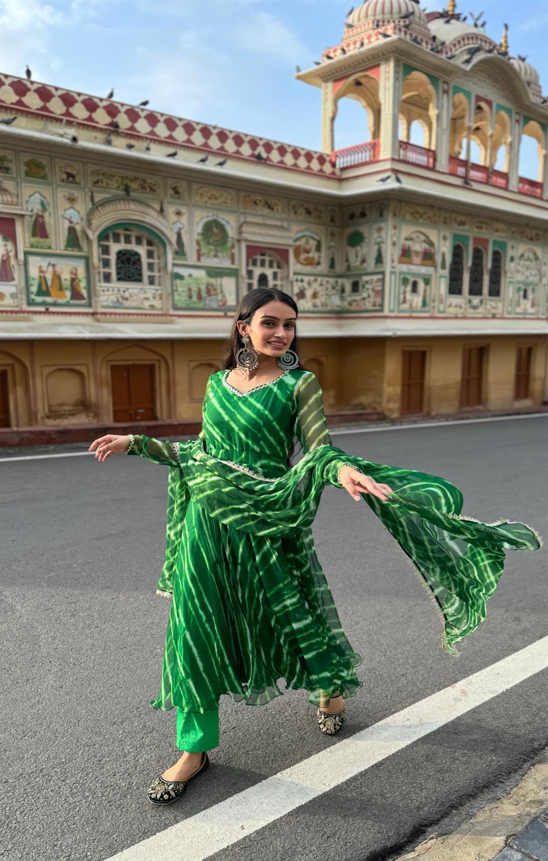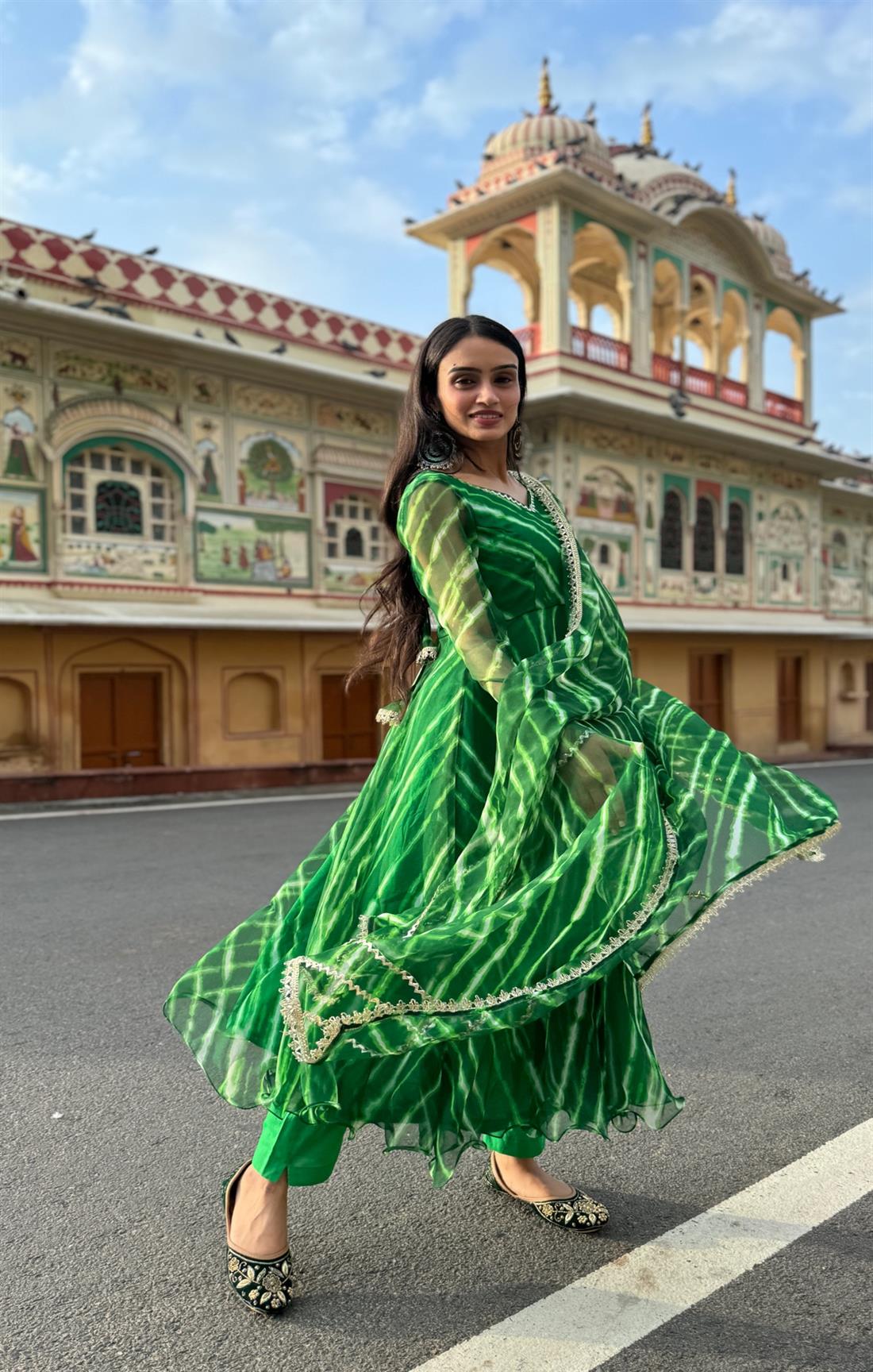 *Anarkali* - Pure Georgette printed Anarkali suit of huge flair with Designer Lace Border