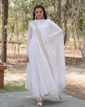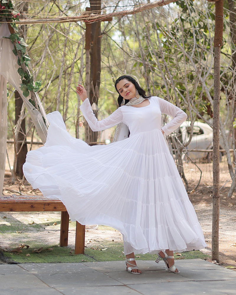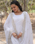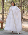 Designer Embroidered White Ethnic Gown with Dupatta