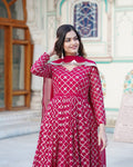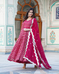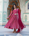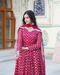 Designer Embroidery Work Rani Pink Anarkali Gown With Dupatta