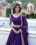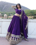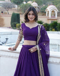 Designer Faux Blooming Semi Stitched Purple Lehenga Choli