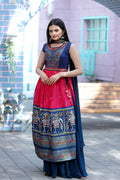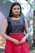 Designer Hand Mirror Work Navy Blue With Pink Sharara Suit