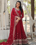 Designer Maroon Color Faux Blooming Embroidered Gown