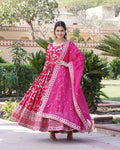 Introducing the Designer Pink Color Sequence Embroidered Viscose Jacquard Gown With Dupatta, a stunning ensemble that epitomizes elegance and sophistication. This exquisite gown features intricate sequence embroidery in a captivating pink hue, adding a touch of glamour to your attire. Crafted from high-quality viscose jacquard fabric, it offers a luxurious feel and impeccable drape, ensuring both comfort and style. Paired with a matching dupatta, embellished with complementary details, this ensemble is perfect for special occasions, weddings, and festivities. Elevate your fashion statement with this designer pink gown, designed to make you stand out in any crowd.