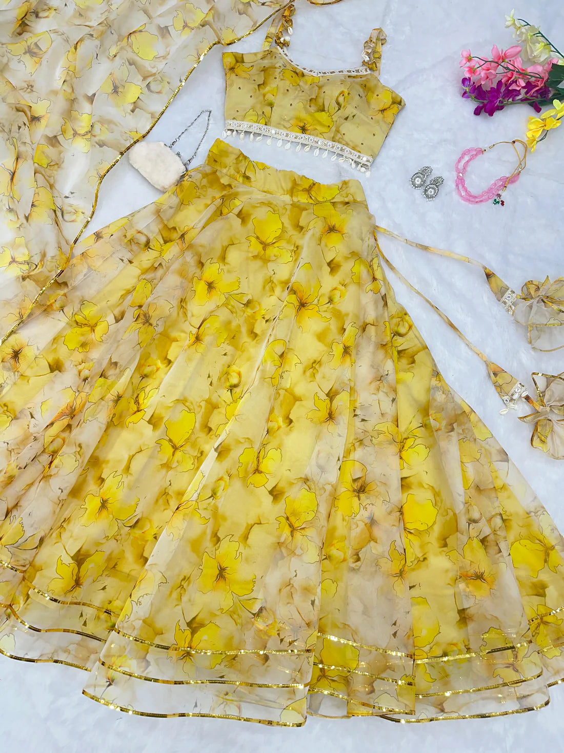 Digital Printed Modern Touch Yellow Lehenga Choli
