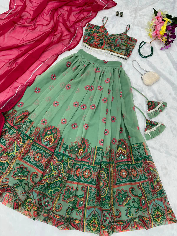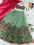 Digital Printed Pista Green color Kalamkari Lehenga Choli