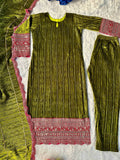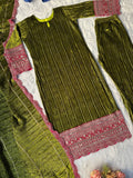 Elegant Deep Green Viscos Velvet Festive Suit Set With Scallop Lace Dupatta