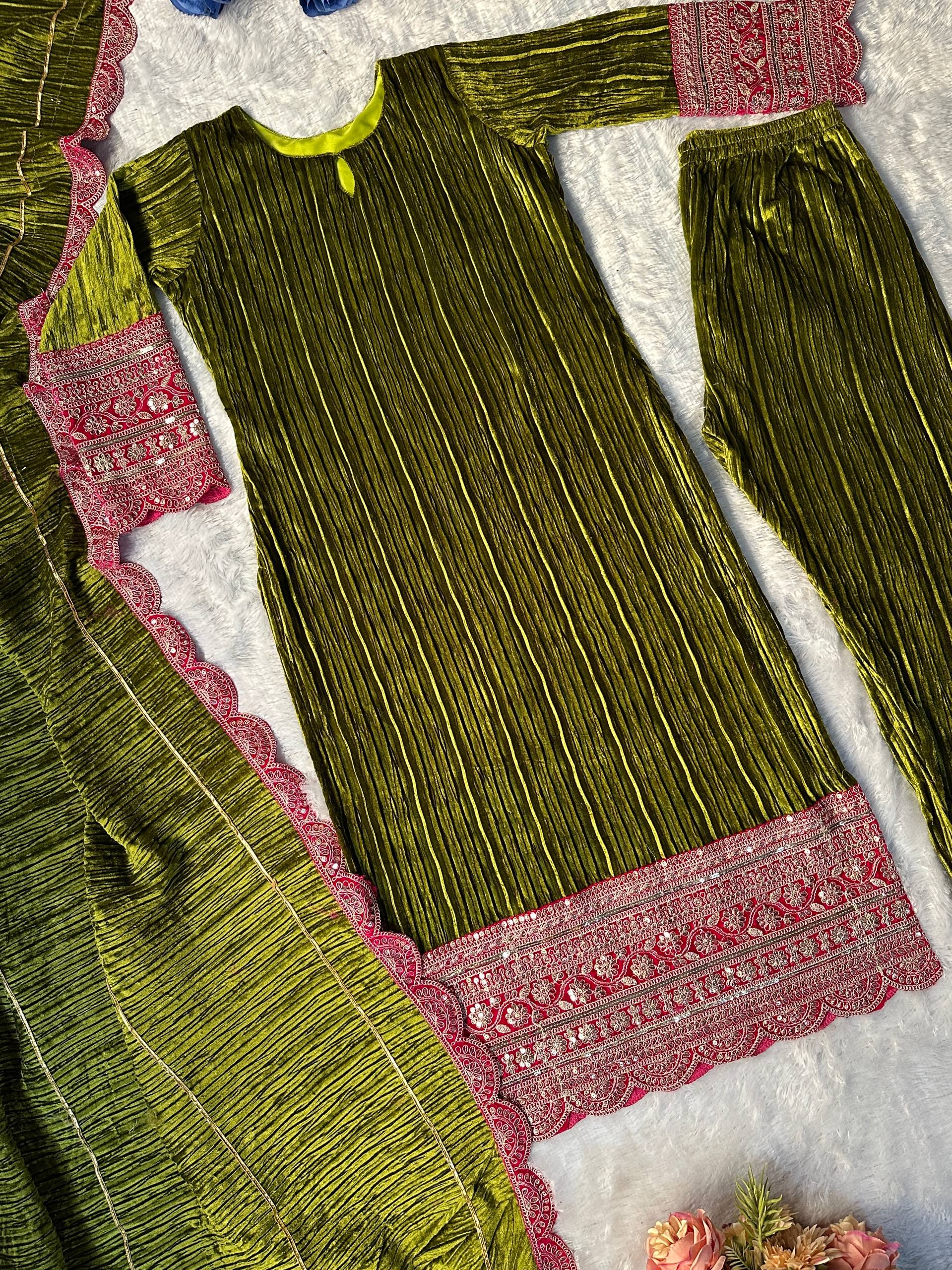 TOP FABRIC : HAVY CRASH VISCOS VELVET WITH HAVY EMBROIDERY WORK