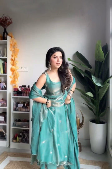Elegant Fandy Silk Anarkali Gown Set – Perfect for Weddings & Special Occasions
