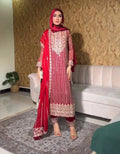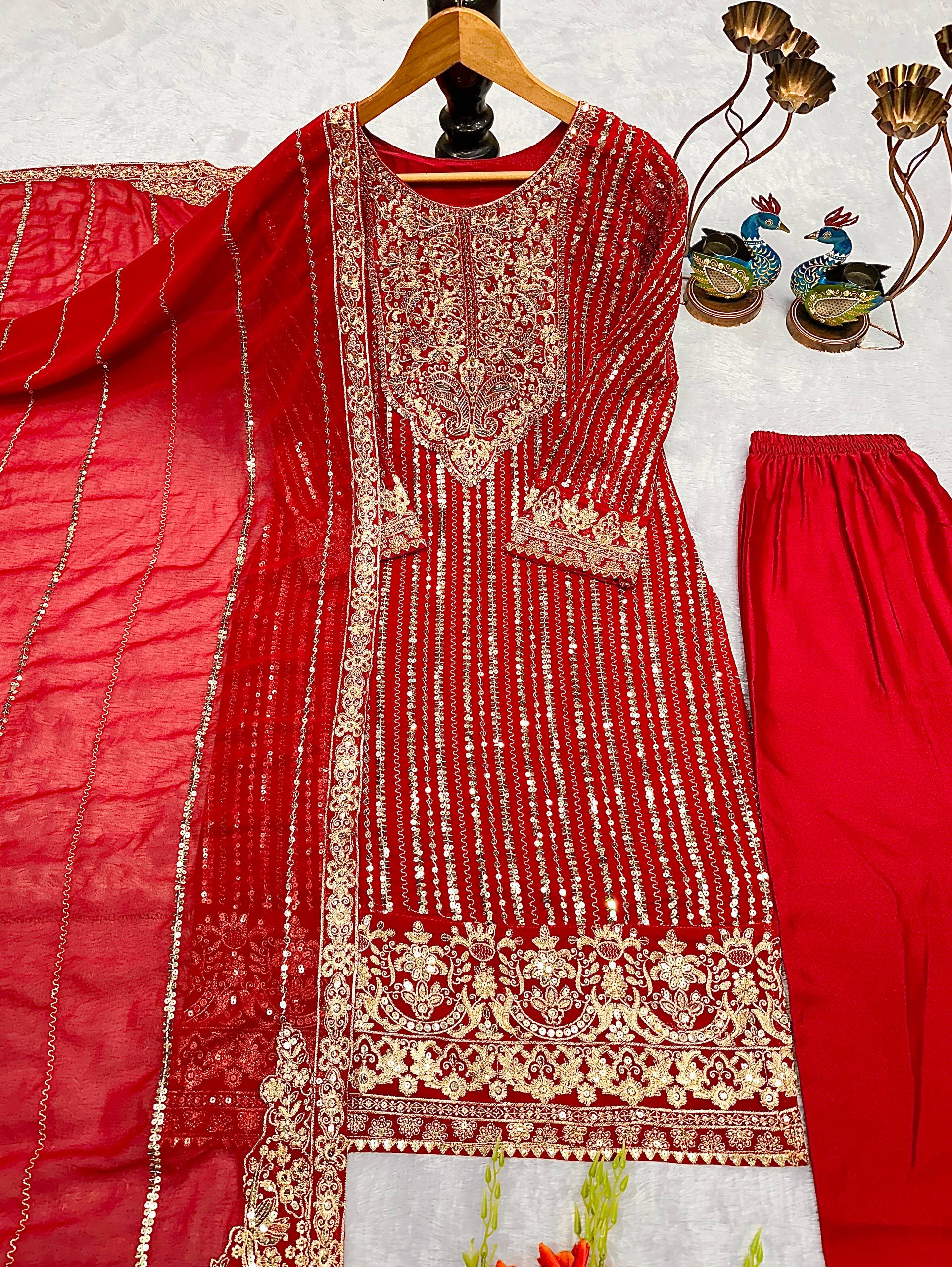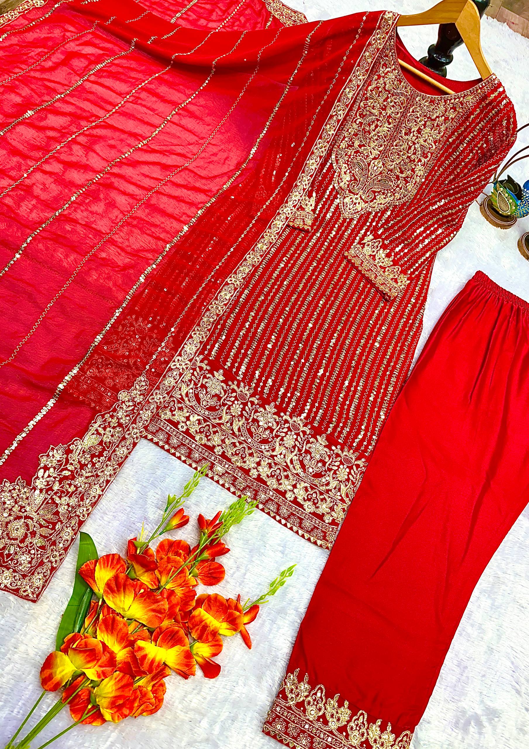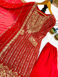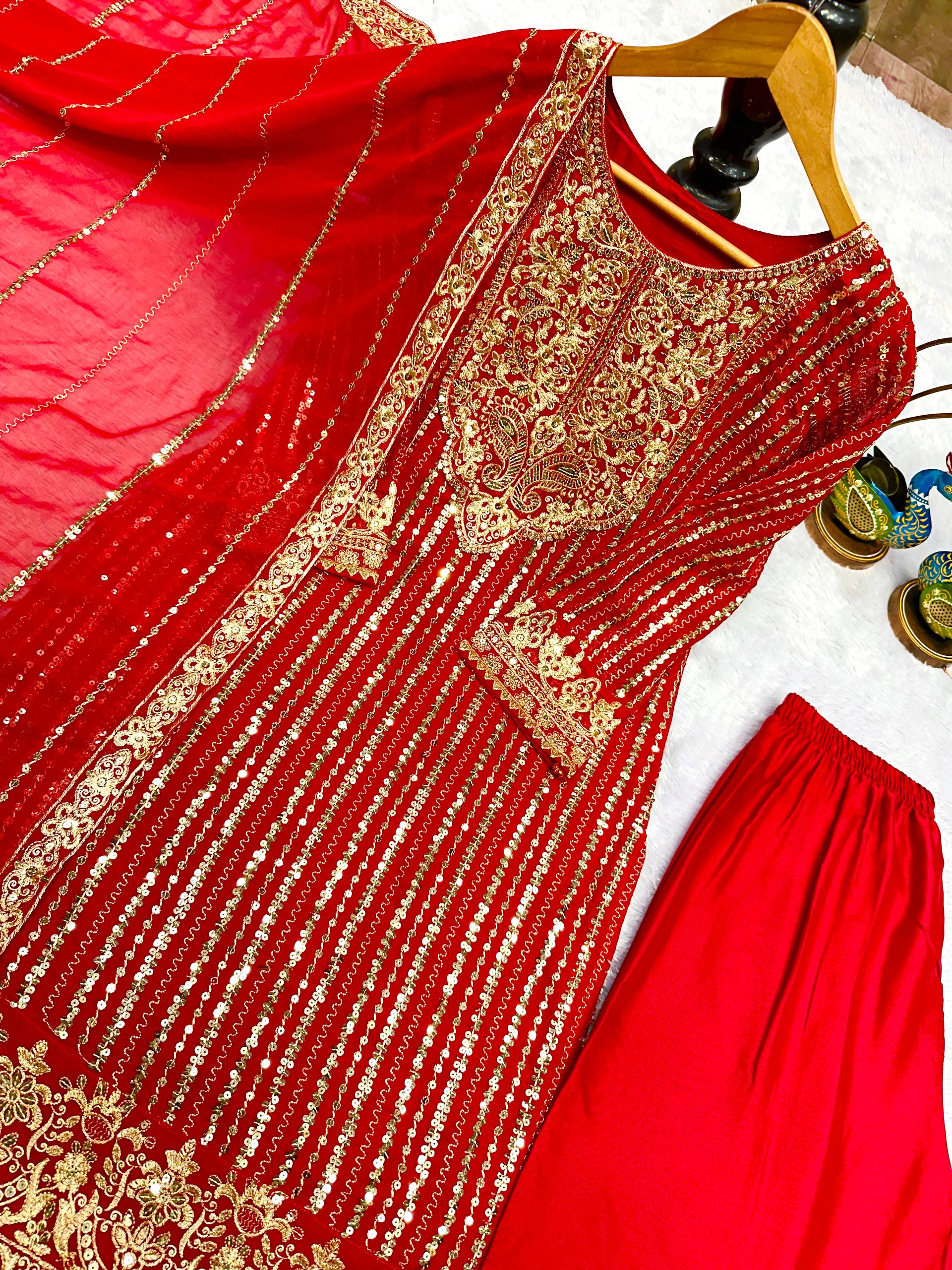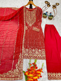 Elegant Heavy Fox Georgette Embroidered Top with Micro Cotton Palazzo With Dupatta