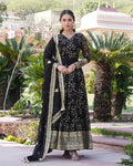 Make a grand entrance with this Designer Black Color Gown, crafted from luxurious Faux Blooming fabric. Adorned with rich sequin embroidery, this gown exudes opulence and sophistication. Perfect for special occasions and events, it combines contemporary elegance with timeless allure, ensuring you stand out with every step.