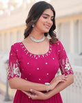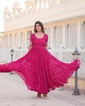 Four Layer Faux Blooming Sequence Embroidery Work Pink Gown