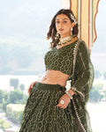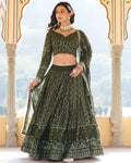 Georgette Heavy Embroidery Threaded Semi Stitched Dark Green Lehenga Choli