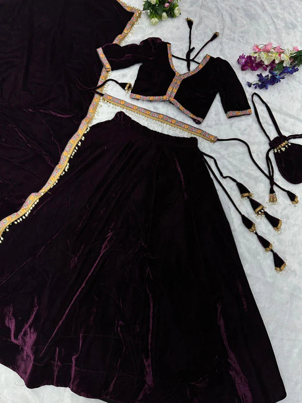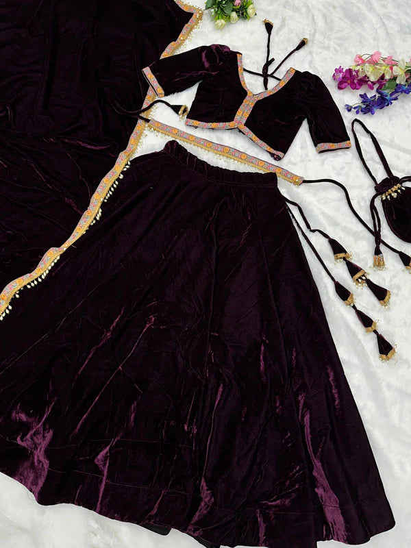 Good Looking Wine Color Fully Stitched Lehenga Choli
