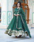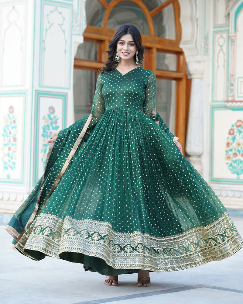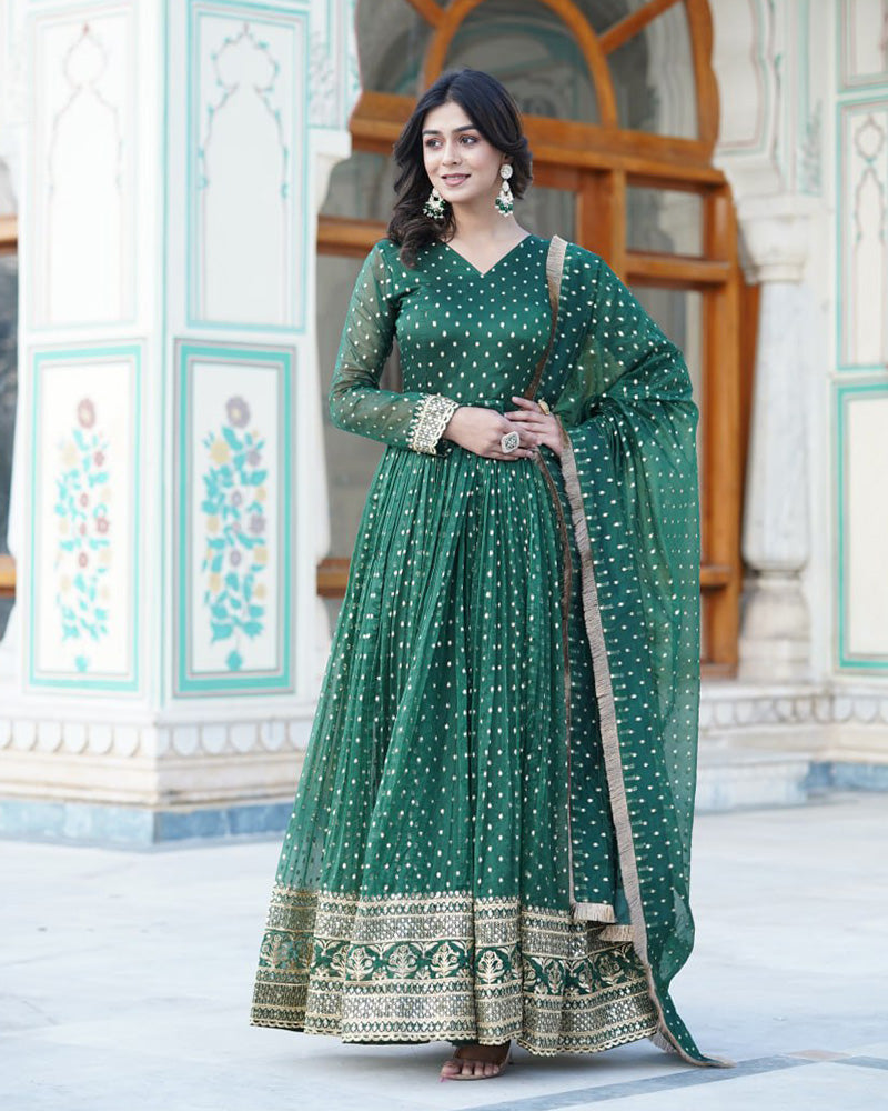 Green Color Organza Nylon Ethnic Gown With Dupatta