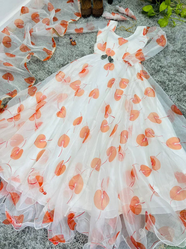Heavy Designer Flower Printed Anarkali Suit With Dupatta