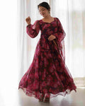 Heer Maroon Colour Flower Printed Pure Organza Gown