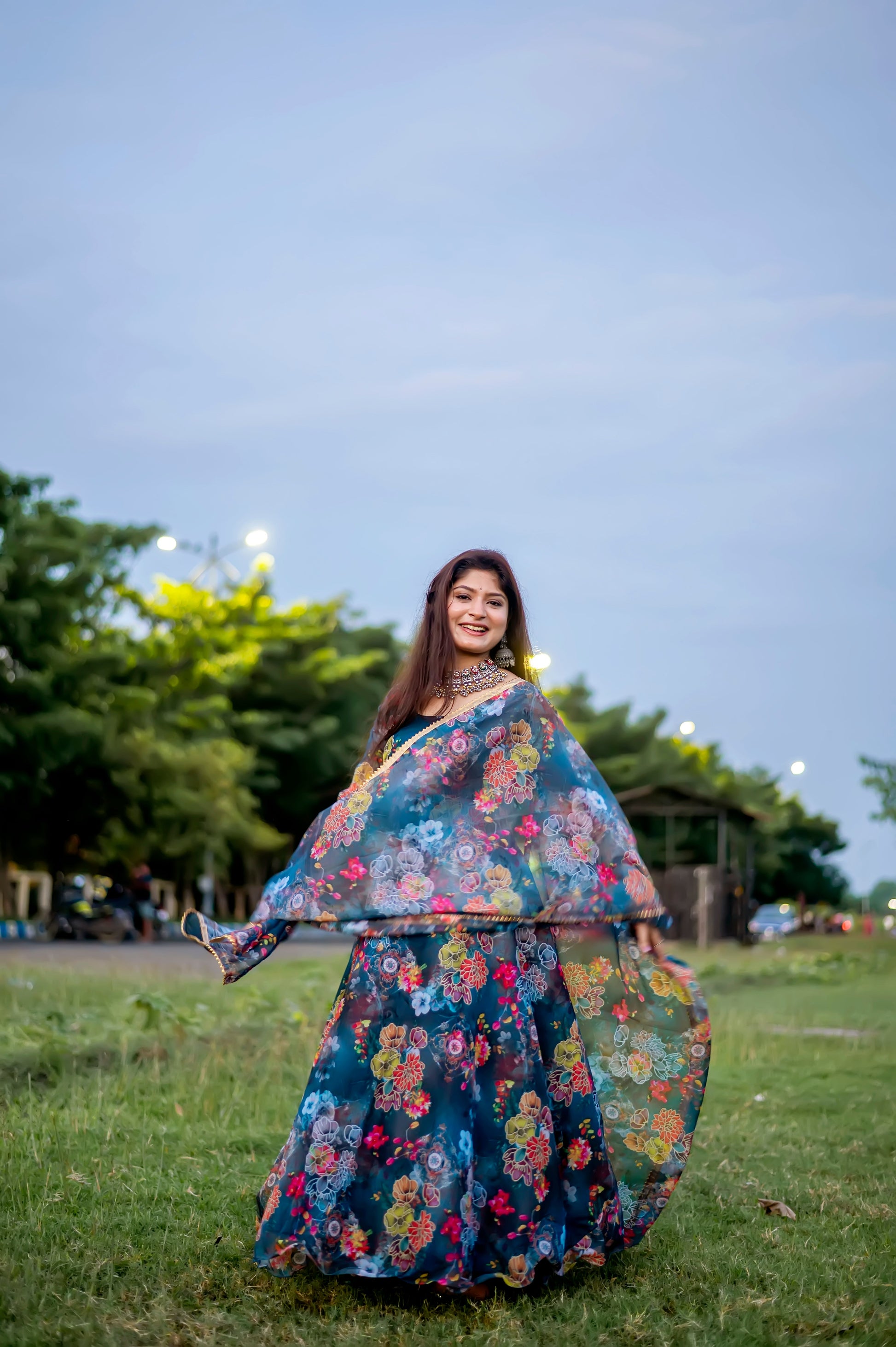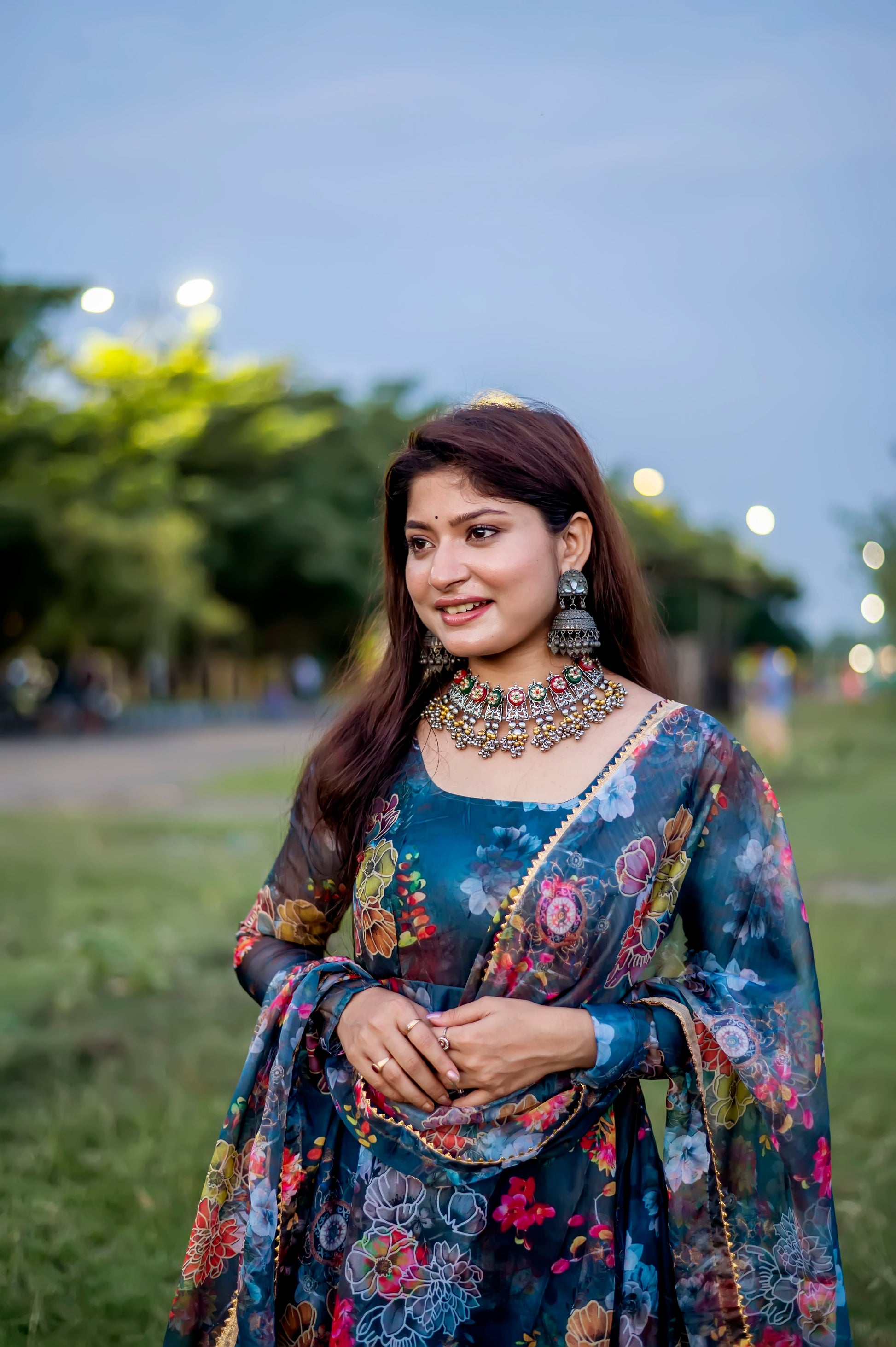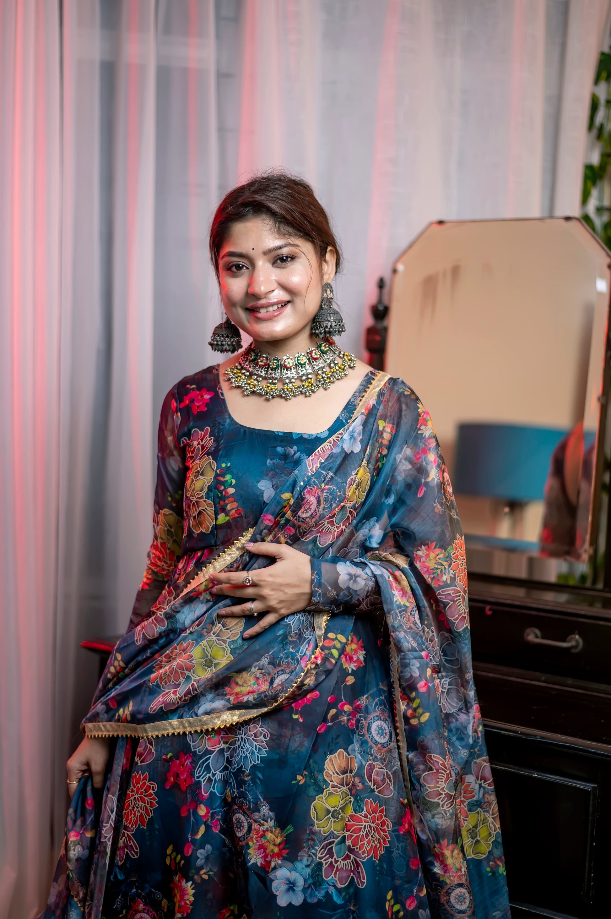 Jiyaan Digital Printed Organza Anarkali Gown