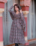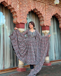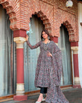 The Mango Kalamkari Printed Full Stitched Three Piece Anarkali Suit is a beautifully designed ethnic outfit that exudes grace and elegance. This three-piece ensemble includes a full-length Anarkali dress, bottoms (salwar or churidar), and a matching dupatta.