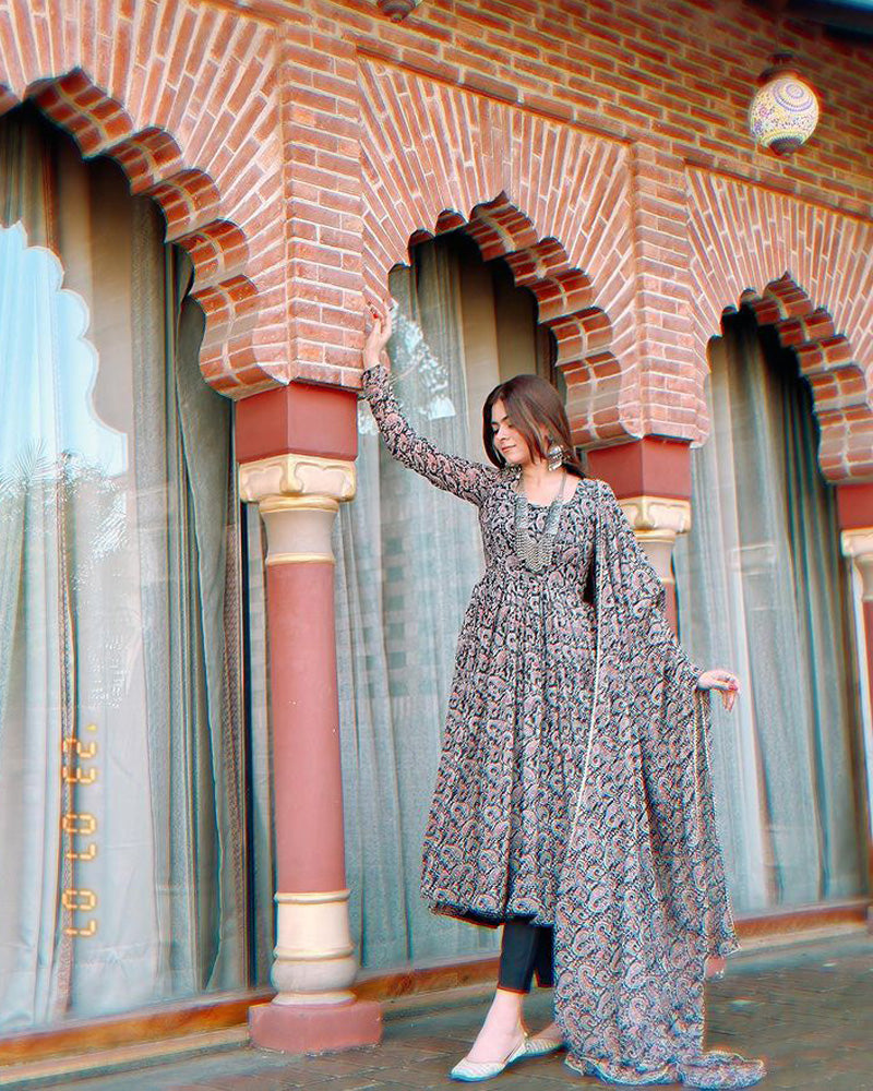 The suit comes fully stitched, saving you the hassle of tailoring, and is available in various sizes for a comfortable fit. The flowing Anarkali style flares from the waist down, adding a regal touch to the attire. The bottoms complement the dress beautifully, and the coordinating dupatta completes the look, adding an element of finesse.