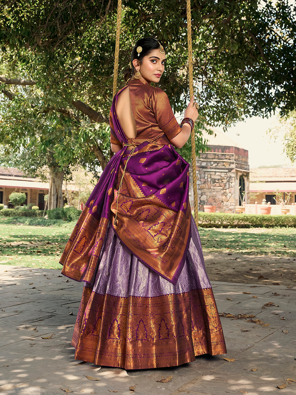 Lavender Color Zari Weaving Work Jacquard Silk Lehenga Choli