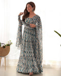 Light Blue Color Soft Georgette Ruffle Style Anarkali Suit