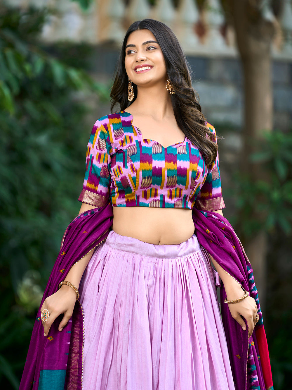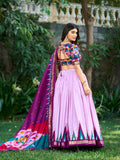 Light Pink Color Print With Foil Work Tussar Silk Lehenga Choli