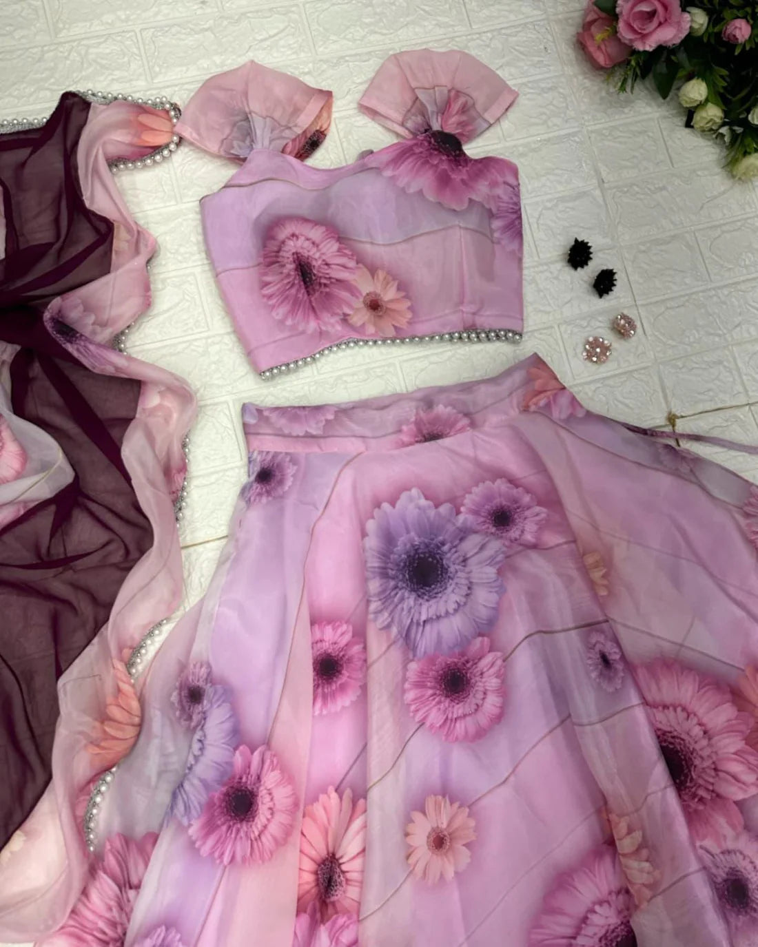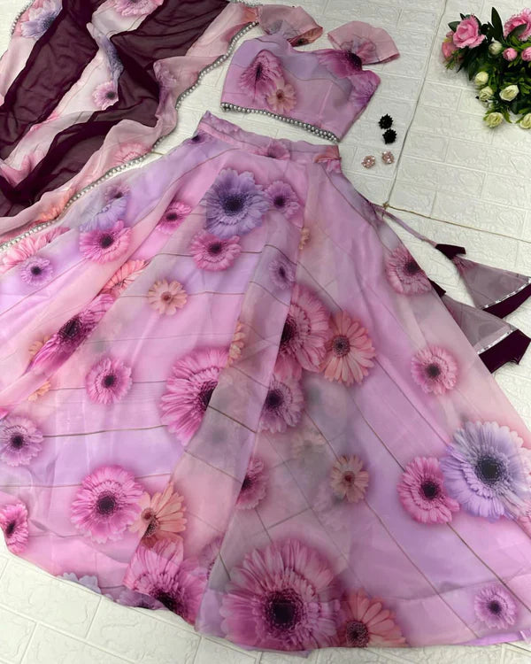 | Lehenga | Pure Jimmy Organza Silk Digital Printed Lehnga. 8mtr Flair Lehnga With Canvas Patta |
