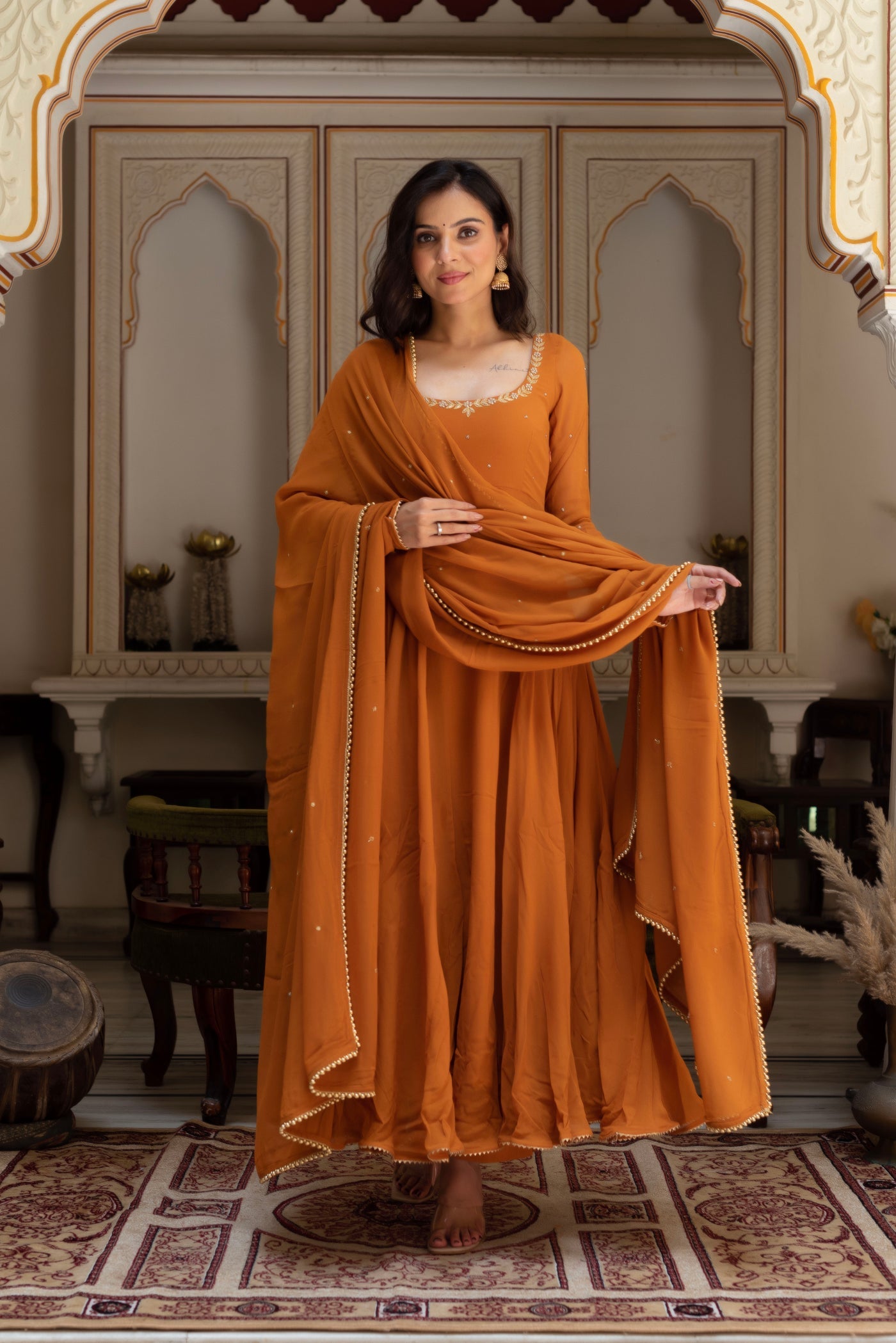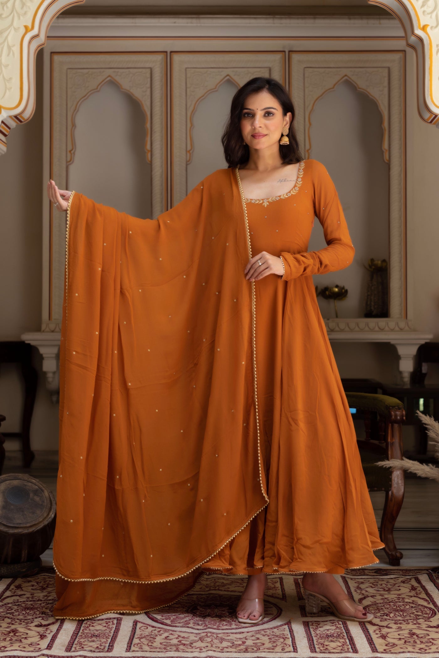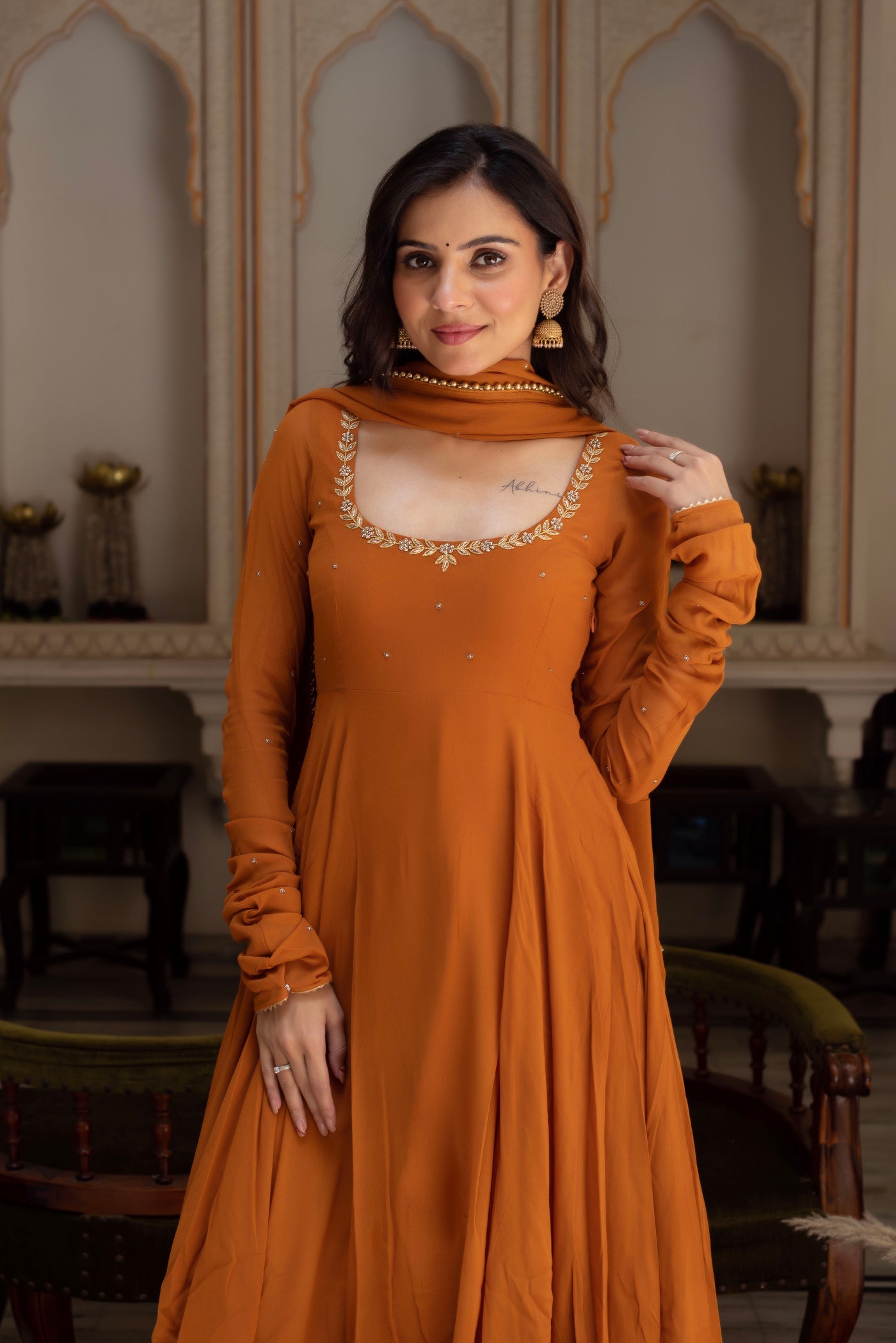 Luminous Embroidered Neck Work Anarkali Suit Set with Dupatta