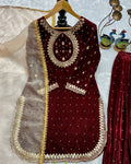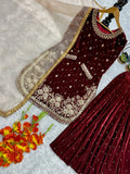 Luxury Maroon Velvet Embellished Sharara Suit for Wedding