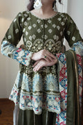 Mahendi Chinon Heavy Embroidery Sequence Work Top Kali Plazzo Set With Dupatta For Wedding