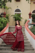 Maroon Color Faux Georgette Embroidered Sharara Suit