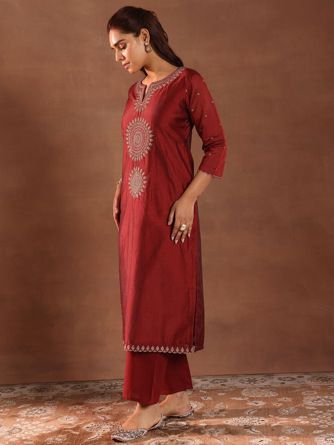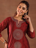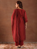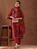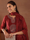 Maroon Embroidery Worked Straight Kurta Suit Set With Dupatta For Function