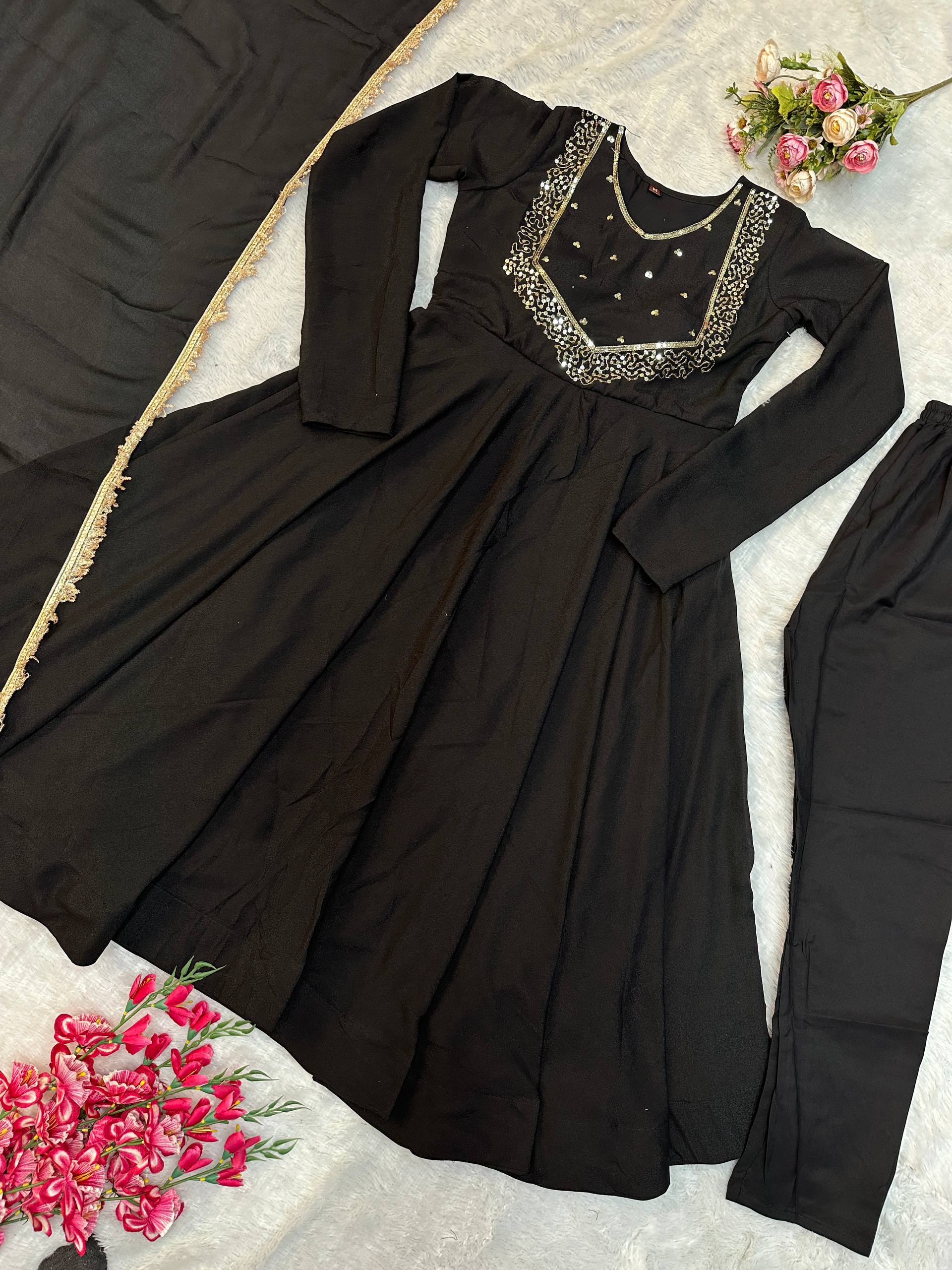 Moonlight Black Color Star Georgette With Embroidery Work Anarkali Gown
