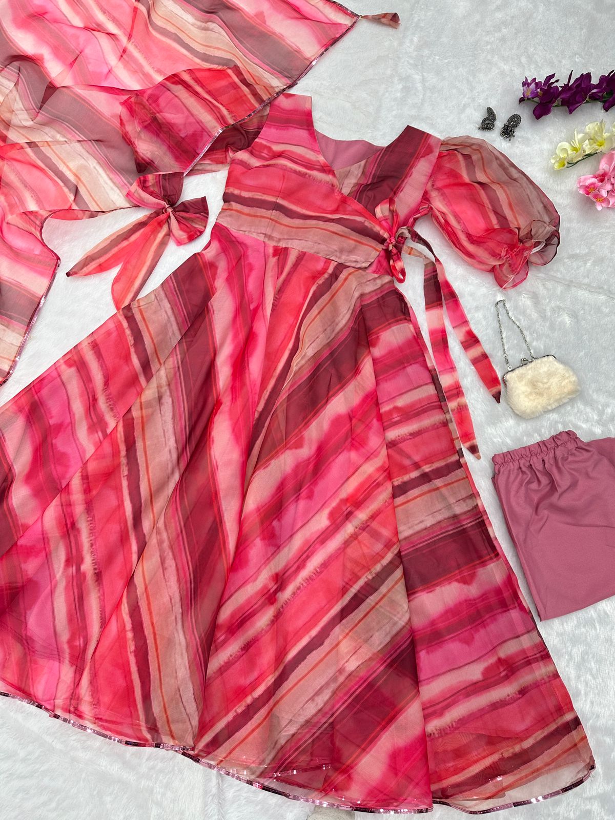 Multi Color Beautiful Printed Anarkali Gown Pant With Dupatta