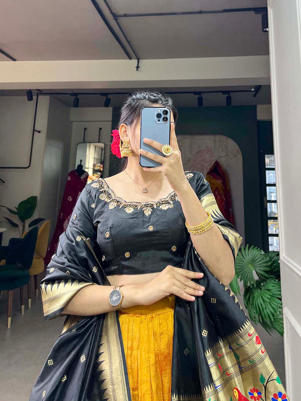 Mustard Color Plain With Paithani Lace Border Vichitra Silk Lehenga Choli
